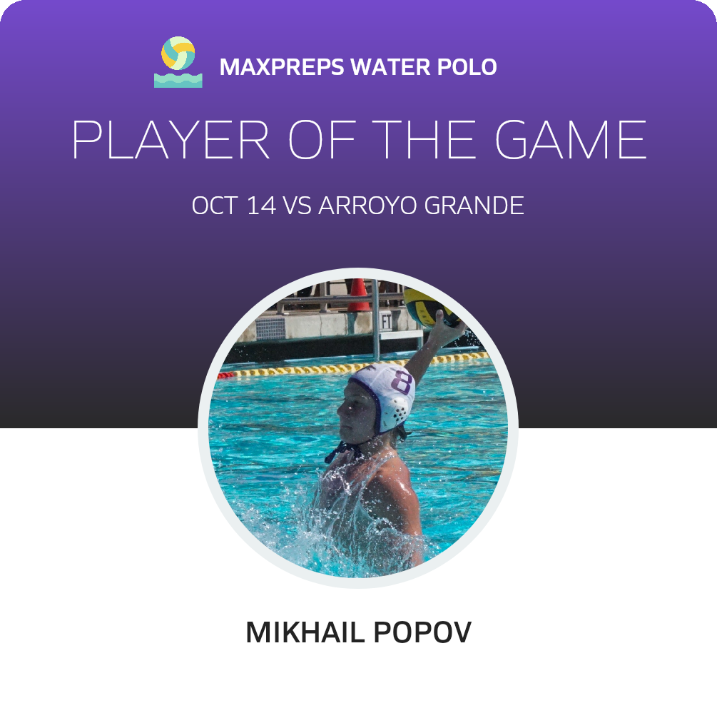 Congratulations to #8 Mikhail Popov for being selected the College Park Water Polo Player of the Game.