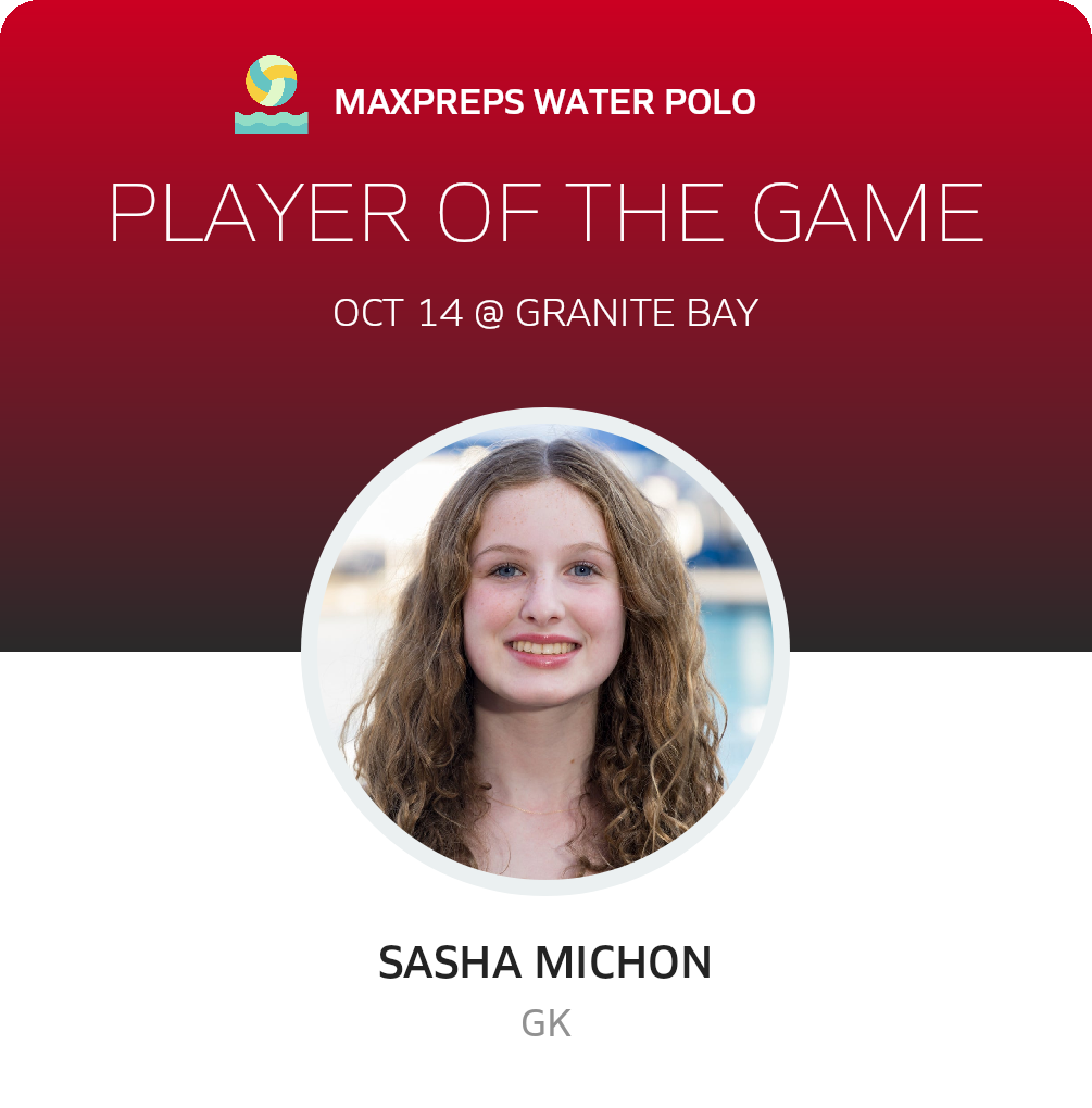 Congratulations to #1 Sasha Michon for being selected the St. Francis Girls JV Water Polo Player of the Game.