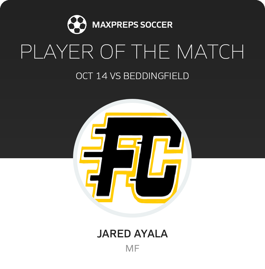 Congratulations to #2 Jared Ayala for being selected the Farmville Central Soccer Player of the Match.