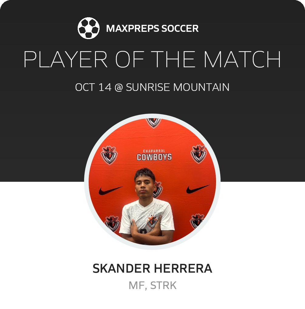 The Cowboys now sport a 14-3 record. They take the field next when they travel to Pinecrest Academy Sloan Canyon for a non-league match on Thursday, October 16. Chaparral will meet a Pirate team coming off a 9-1 league loss to Del Sol (Las Vegas, NV). The Pirate record now stands at 2-10.