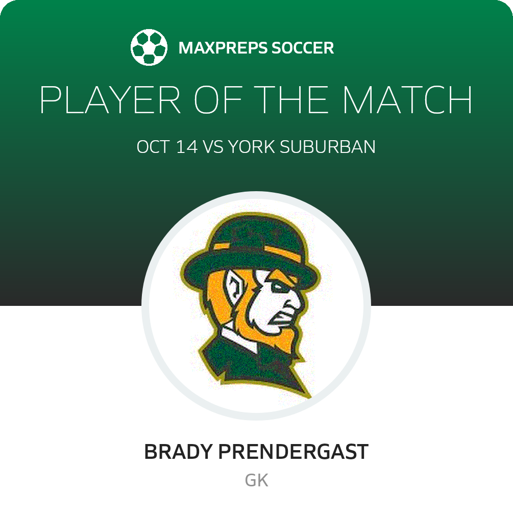 Congratulations to #0 Brady Prendergast for being selected the York Catholic Soccer Player of the Match.