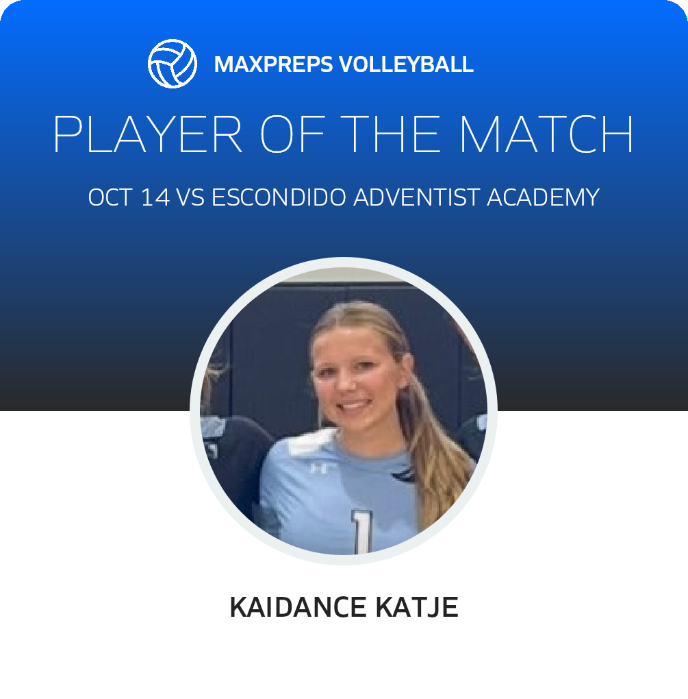 October 14, 2025: Escondido, CA 92026 In Tuesday's league match, the Calvin Christian Crusaders (Escondido, CA) volleyball squad overcame the visiting Escondido Adventist Academy Hawks (Escondido, CA), by a count of 3-0.