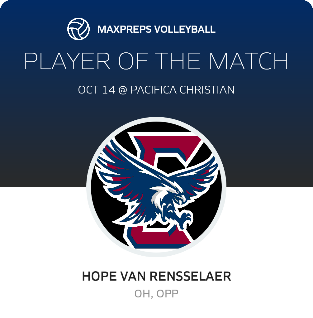 With the loss, Capistrano Valley Christian drops to 7-19 on the campaign. The Eagles travel to Dana Hills (Dana Point, CA) to play the Dolphins in a non-league outing on Wednesday, October 15. The Dolphins come into the outing with a record of 10-12. Dana Hills won 3-0 in their recent league game against Trabuco Hills (Mission Viejo, CA)