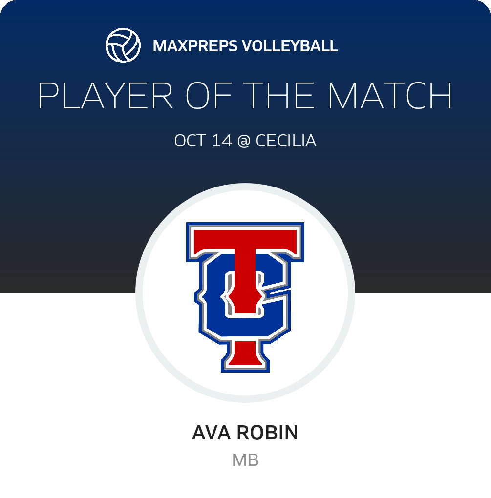 October 14, 2025: Cecilia, LA 70517 The Teurlings Catholic Rebels were victorious over the host Cecilia Bulldogs volleyball team by a margin of 3-0 in Tuesday's league outing.