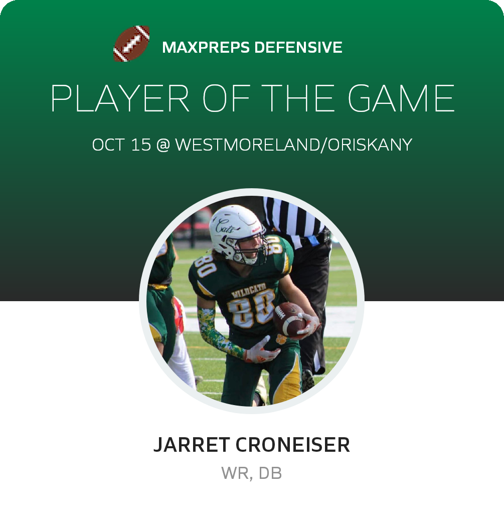 October 15, 2022: Westmoreland, NY In Saturday's league game, the Adirondack Wildcats (Boonville, NY) football team were victorious over the host Westmoreland/Oriskany Bulldogs (Westmoreland, NY), by a score of 54-24.