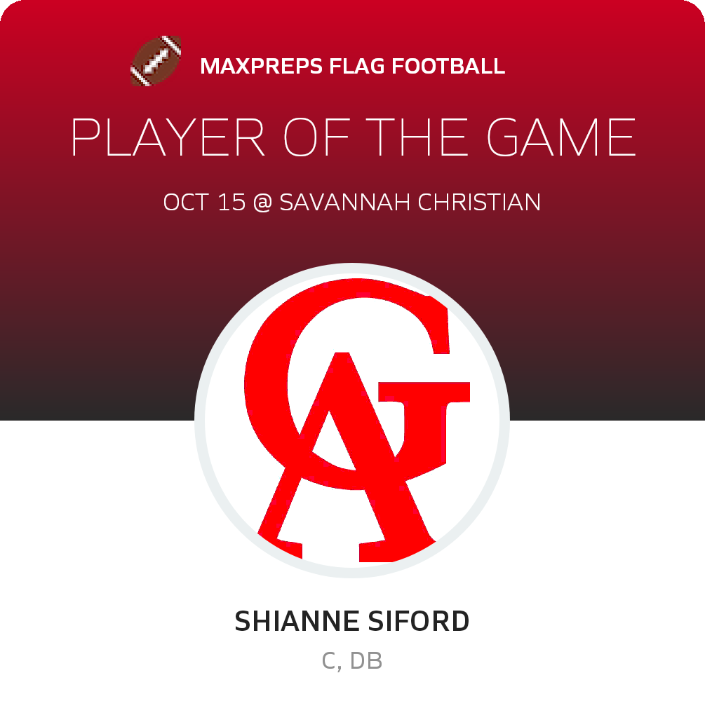 Congratulations to #8 SHIANNE SIFORD for being selected the Glynn Academy Girls Flag Football Player of the Game.