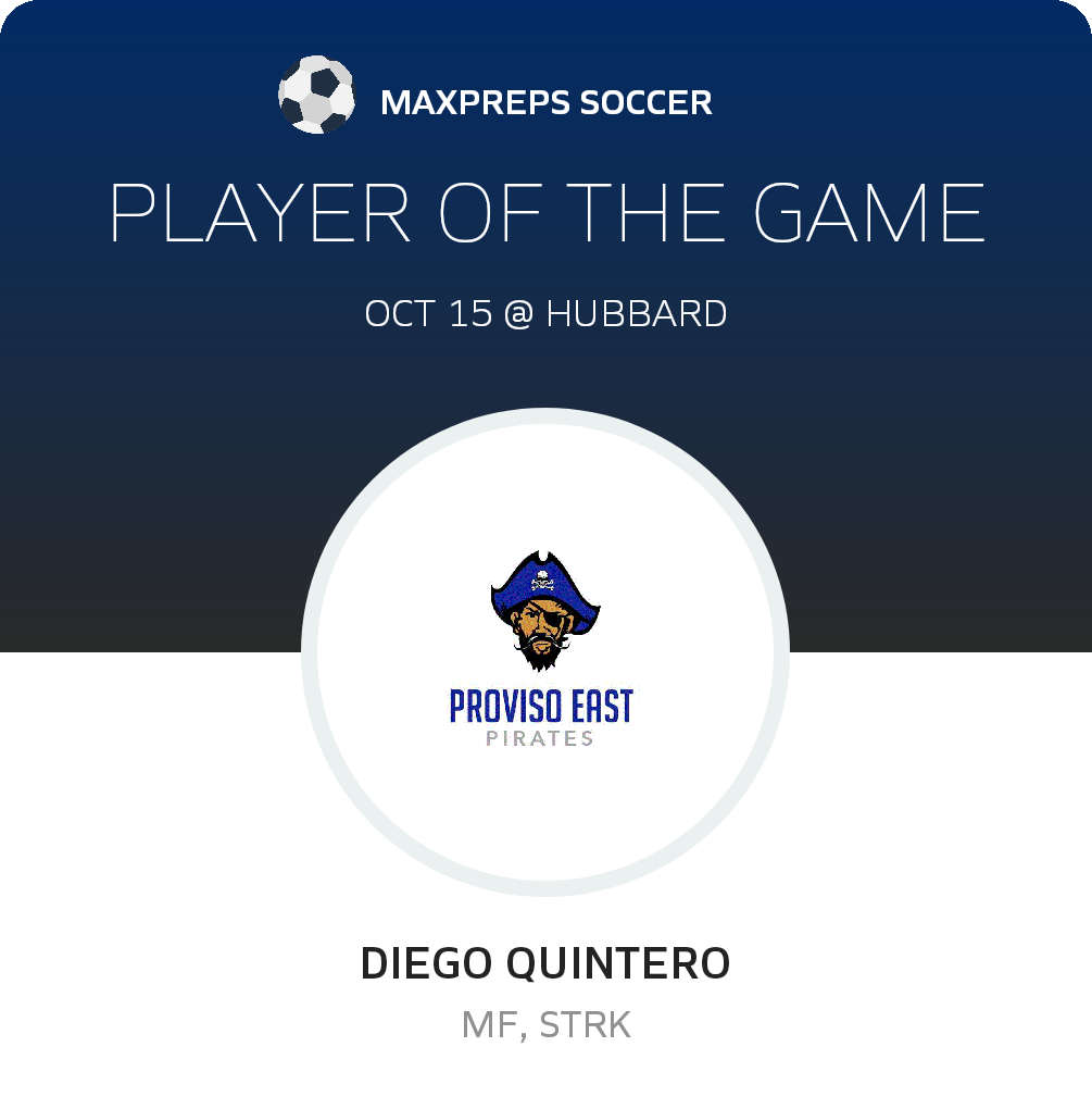 Congratulations to #10 Diego Quintero for being selected the Proviso East Soccer Player of the Match.