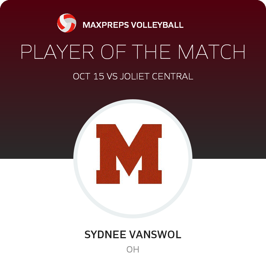 The Momence (IL) varsity volleyball team won Saturday's neutral tournament match against Joliet Central (Joliet, IL) by a score of 2-0.