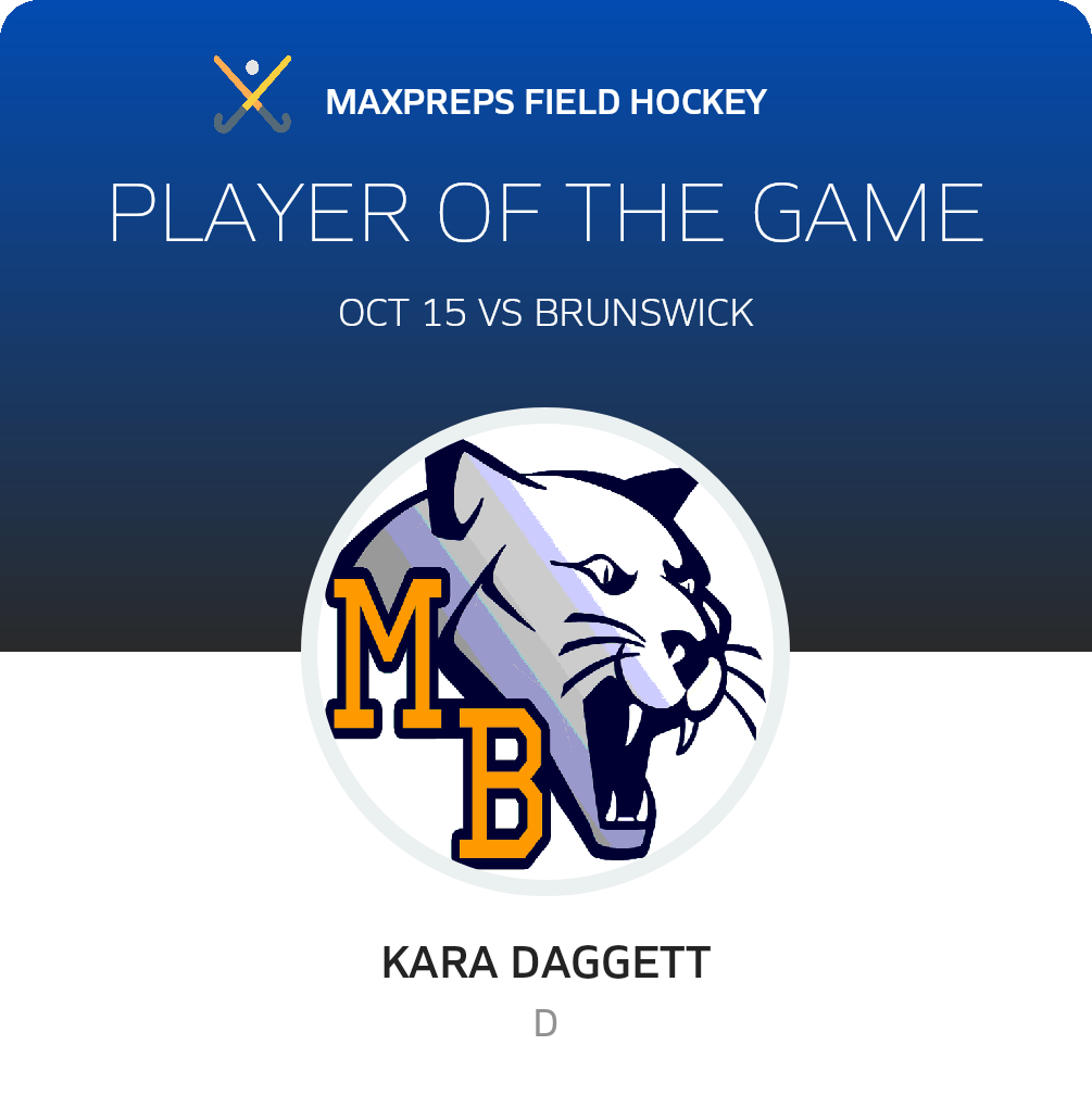 Congratulations to #9 Kara Daggett for being selected the Mt. Blue Field Hockey Player of the Game.