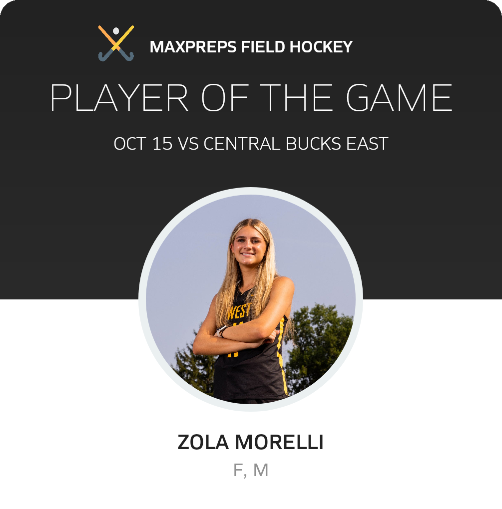 Congratulations to #11 Zola Morelli for being selected the Central Bucks West Field Hockey Player of the Game.