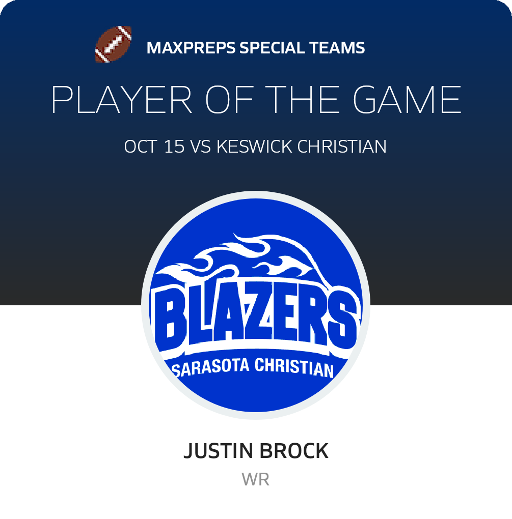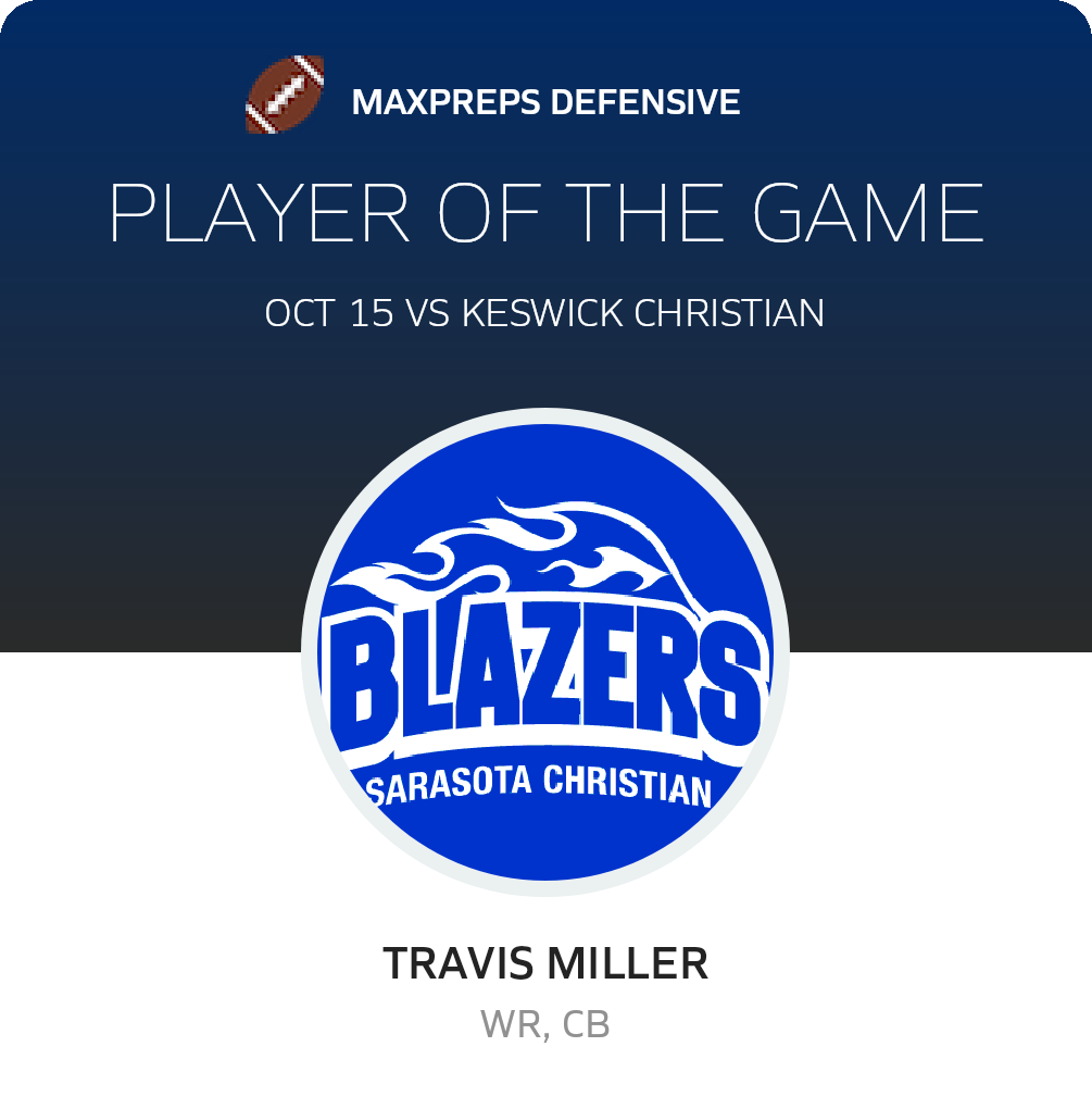 In their next game, the Blazers face the Saint Stephen's Episcopal Falcons (Bradenton, FL) in a non-league challenge, on Saturday, October 19. Sarasota Christian will attempt to improve on its 5-3 season record. The Falcons enter the challenge with a 2-4 record after their 28-10 league win over Cambridge Christian (Tampa, FL).