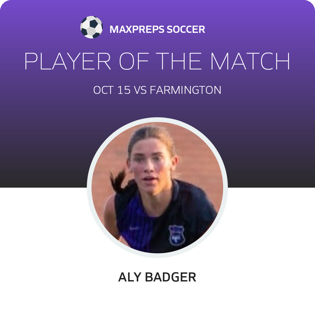 Congratulations to #13 Aly Badger for being selected the Lehi Girls Soccer Player of the Match.