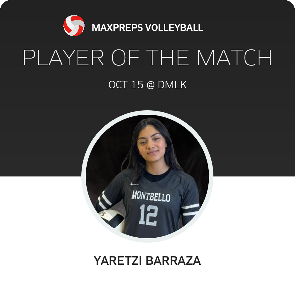 Congratulations to #12 Yaretzi Barraza for being selected the Montbello Volleyball Player of the Match.