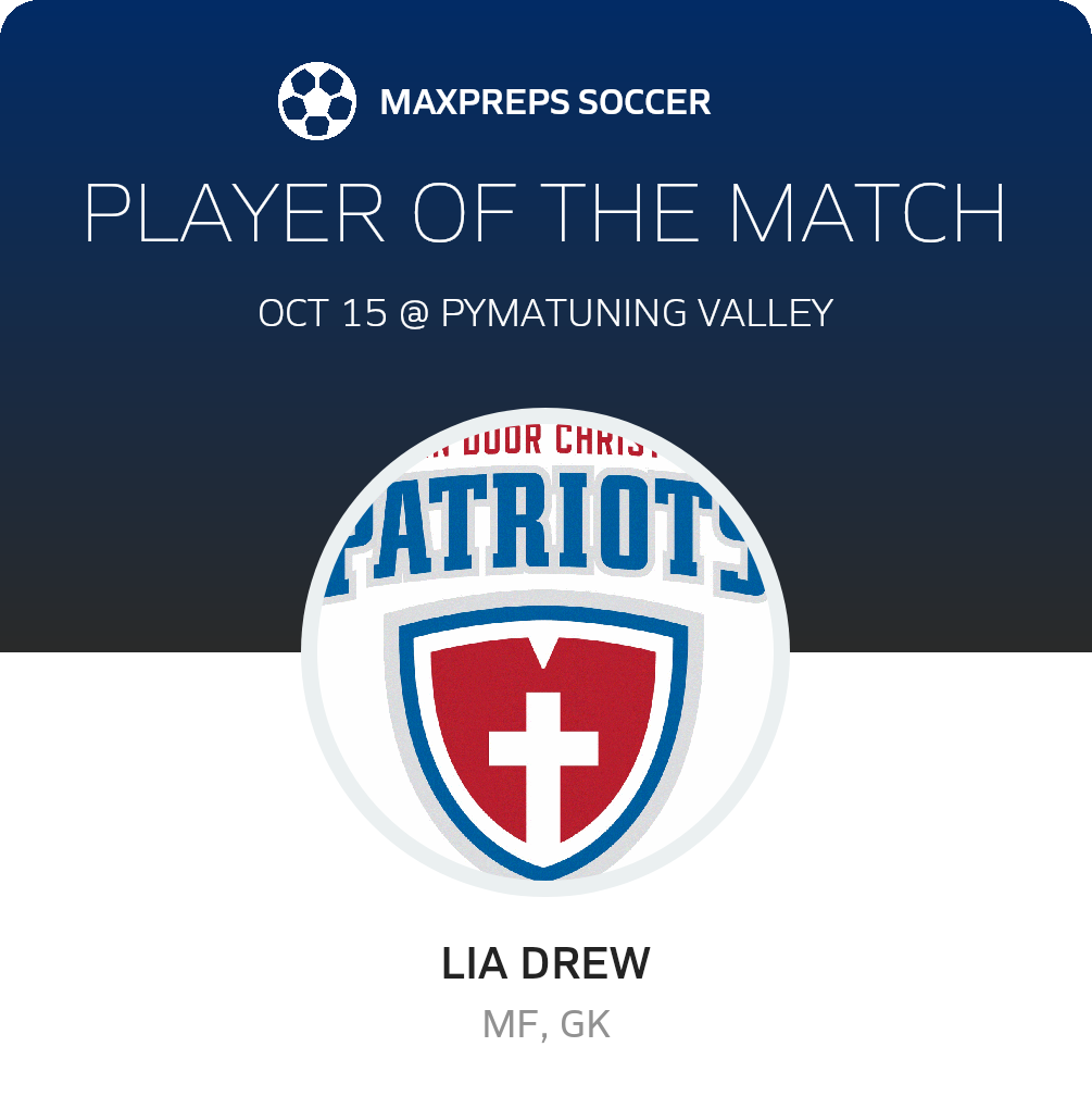 Congratulations to #1 Lia Drew for being selected the Open Door Christian Girls Soccer Player of the Match.