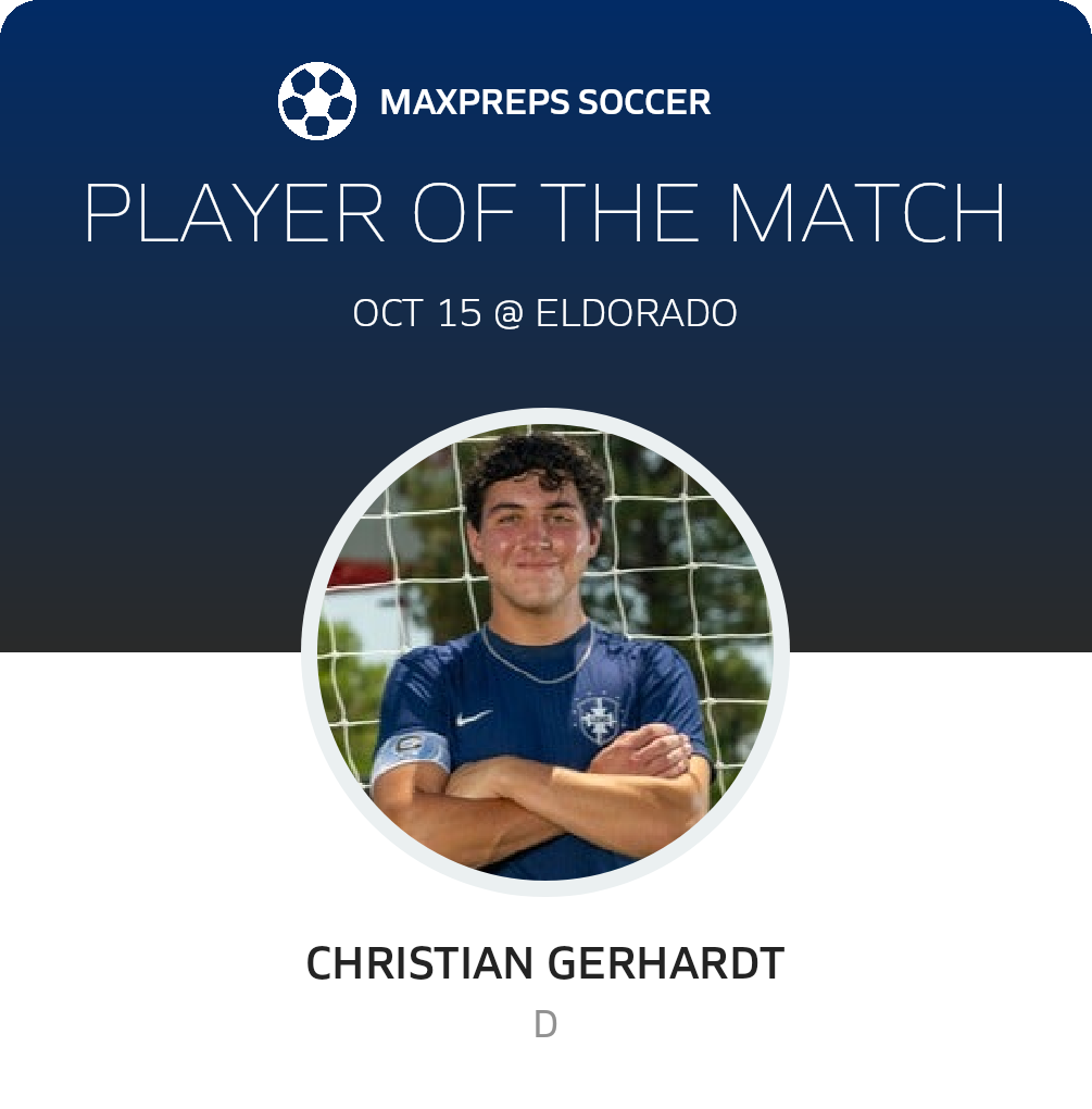 Congratulations to #24 Christian Gerhardt for being selected the La Cueva Soccer Player of the Match.