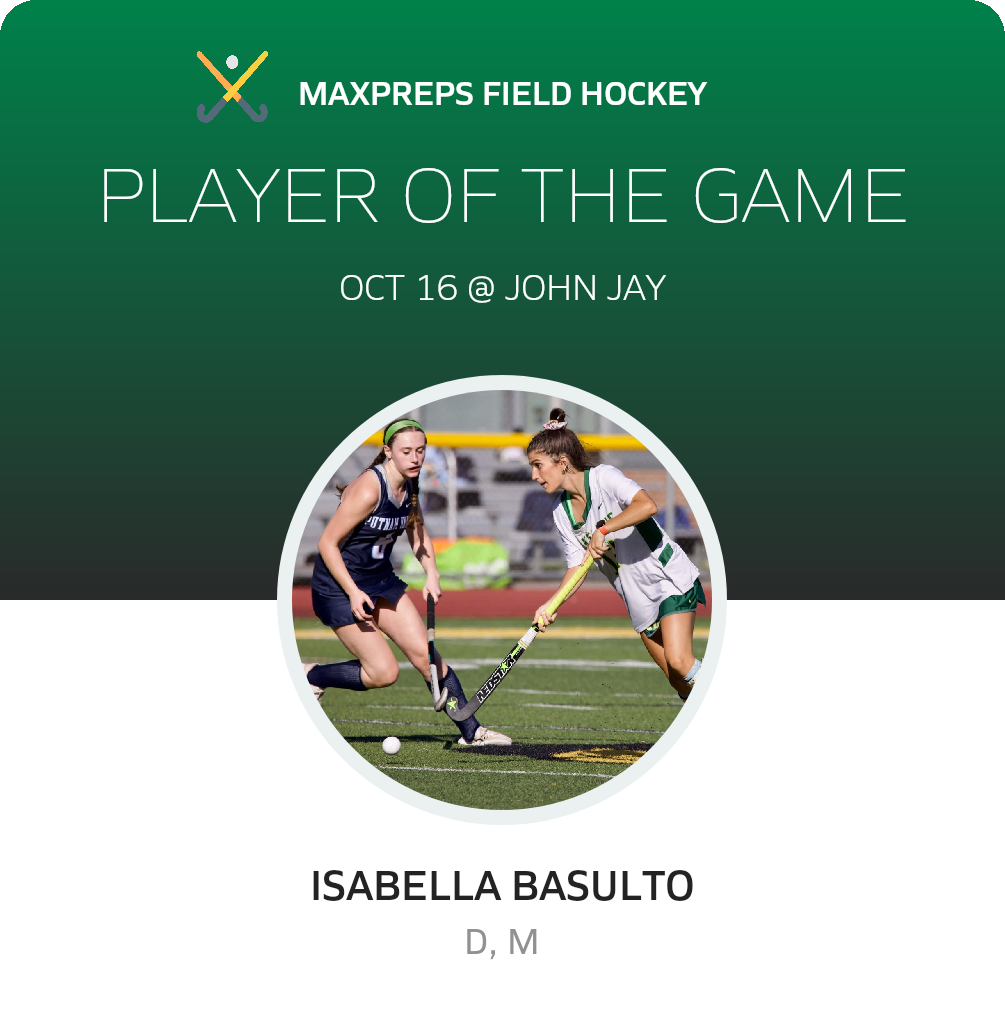 Congratulations to #12 Isabella Basulto for being selected the Lakeland Field Hockey Player of the Game.