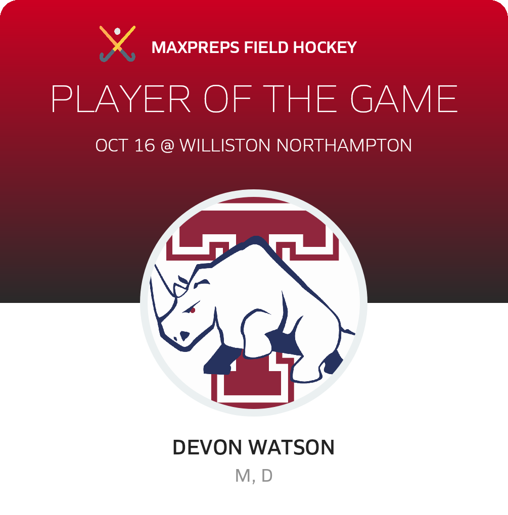 Congratulations to #12 Devon Watson for being selected the Taft School Field Hockey Player of the Game.