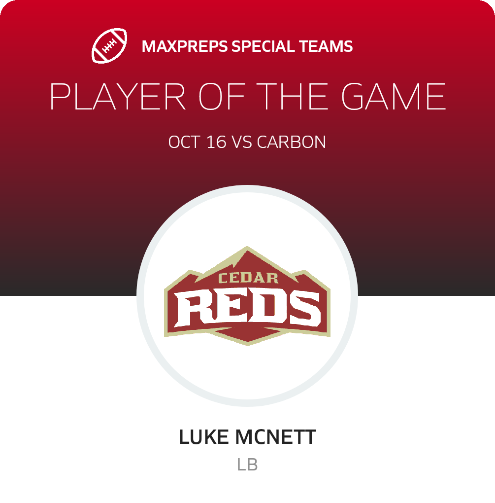Congratulations to #4 Dylan Crowley (offensive), #8 Keaton Cox (defensive) and #33 Luke McNett (special teams) for being selected the Cedar Football Players of the Game.