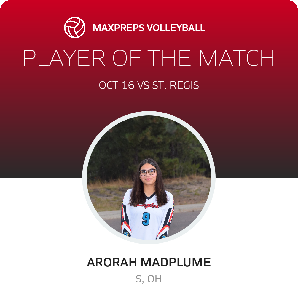 October 16, 2025: Pablo, MT 59855 The St. Regis Tigers (St. Regis, MT) volleyball knocked off the host Two Eagle River Eagles (Pablo, MT), 3-0 in Thursday's league contest.