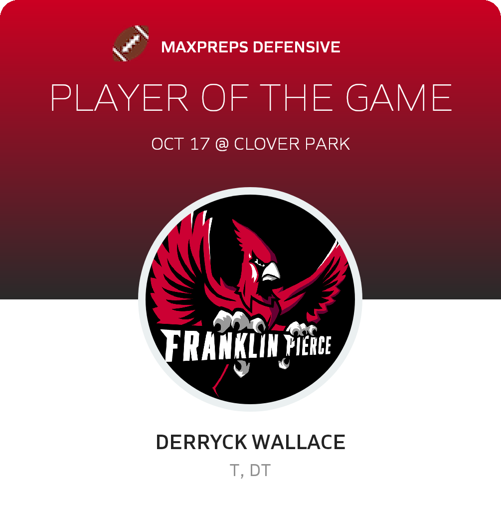 With the triumph, Franklin Pierce improves its record to 4-3 on the campaign. The Cardinals host White River (Buckley, WA) to confront the Hornets in a 2A South Puget Sound test on Friday, October 21. The Hornets come into the test with a record of 1-6. White River lost 49-23 in their recent league test against Steilacoom (Steilacoom, WA)