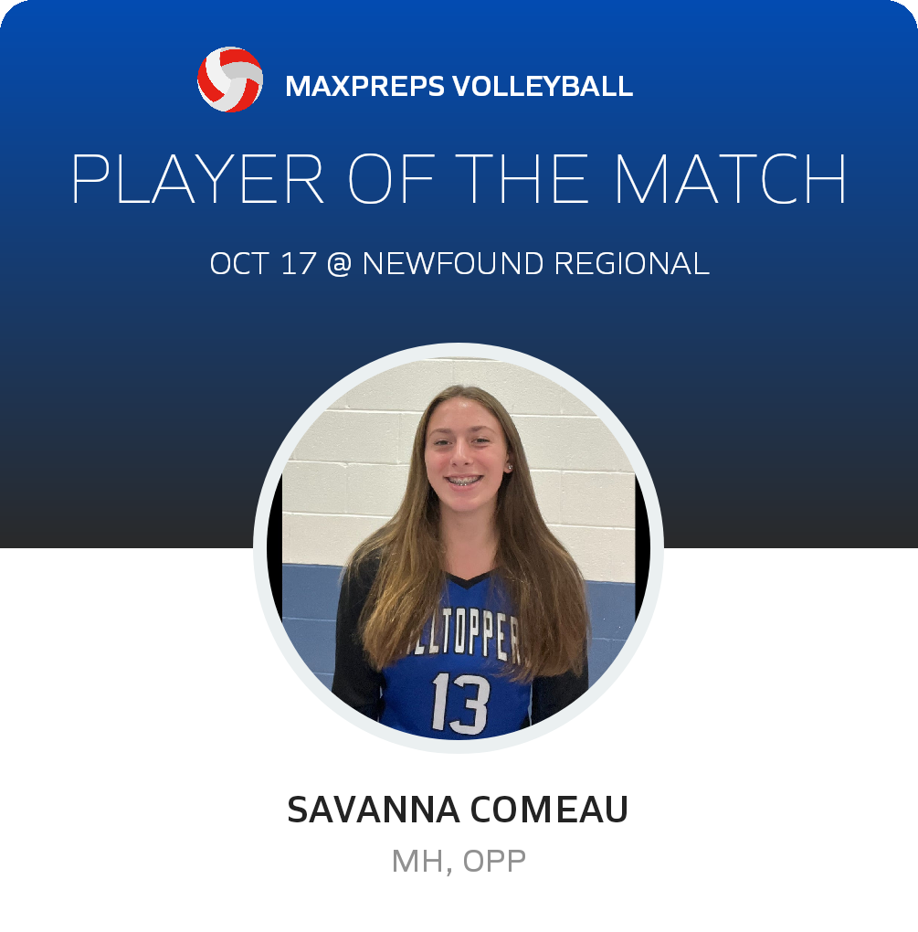 October 17, 2022: Bristol, NH 03222 In Monday's league battle, the visiting Somersworth Toppers volleyball team scored a 3-0 triumph over the Newfound Regional Bears.