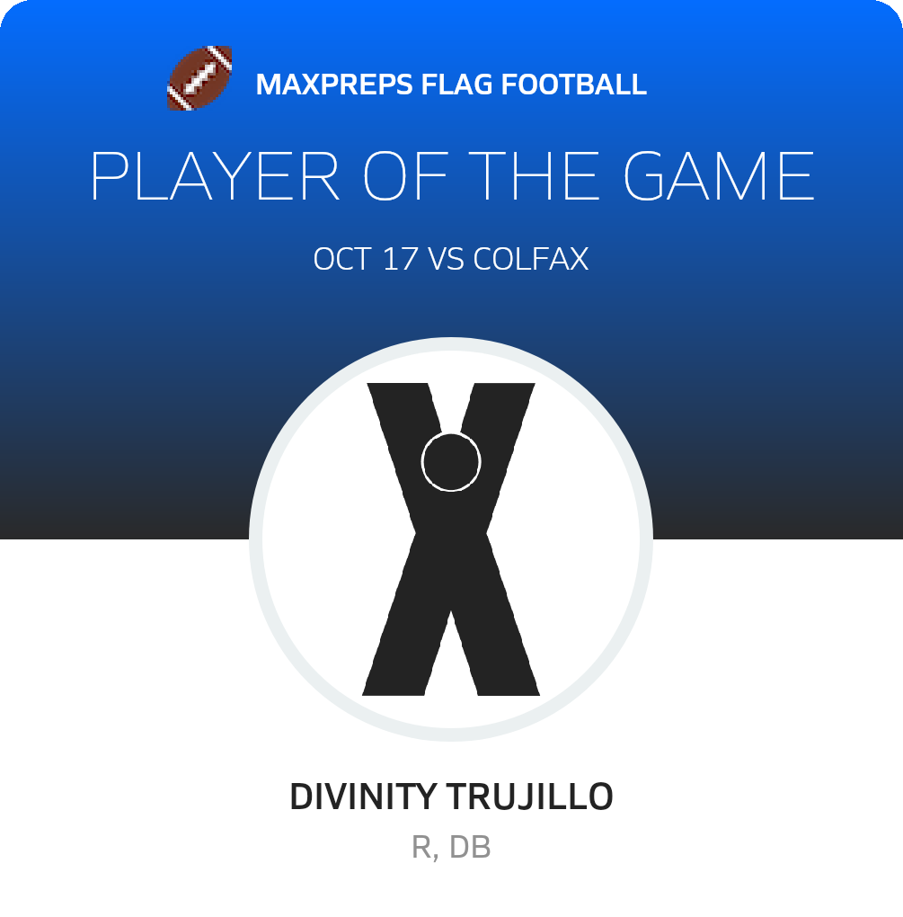 Congratulations to #13 Divinity Trujillo for being selected the Center Girls Flag Football Player of the Game.