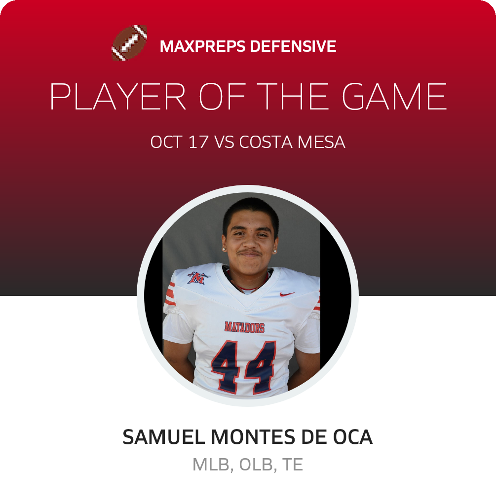 The Mustangs now sport a 5-3 record. They take the field next when they host La Quinta for a Tango test on Friday, October 25. Costa Mesa will meet a Aztecs squad coming off a 47-14 league win over Loara (Anaheim, CA). The Aztecs record now stands at 7-1.