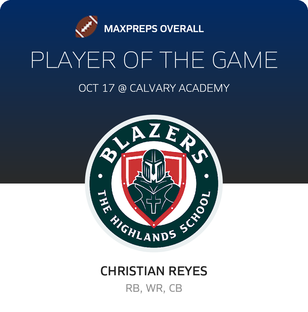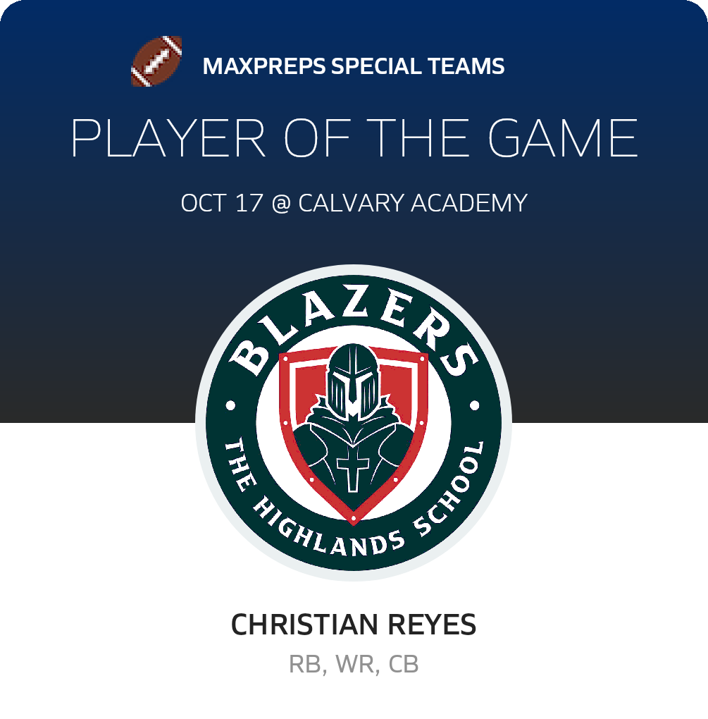 October 17, 2024: Denton, TX 76209 Highlands Blazers (Irving, TX) followers went home pleased Thursday as they saw their football team triumph over the host Calvary Academy Lions (Denton, TX), 62-14 in a league battle.