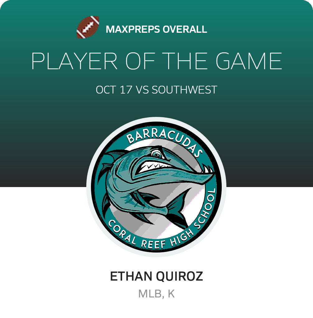 In their next game, the Barracudas battle the Ferguson Falcons (Miami, FL) in a Greater Miami - South game, on Friday, October 25. Coral Reef will attempt to better on its 6-1 season record. The Falcons enter the game with a 4-4 record after their 19-8 non-league loss to American (Hialeah, FL).