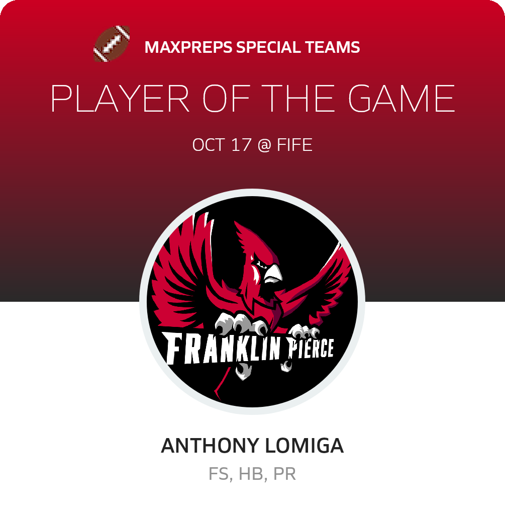 The Cardinals now sport a 7-0 record. They take the field next when they travel to Clover Park for a 2A South Puget Sound outing on Thursday, October 24. Franklin Pierce will clash with a Timberwolves squad coming off a 57-18 league loss to Orting (Orting, WA). The Timberwolves record now stands at 1-6.