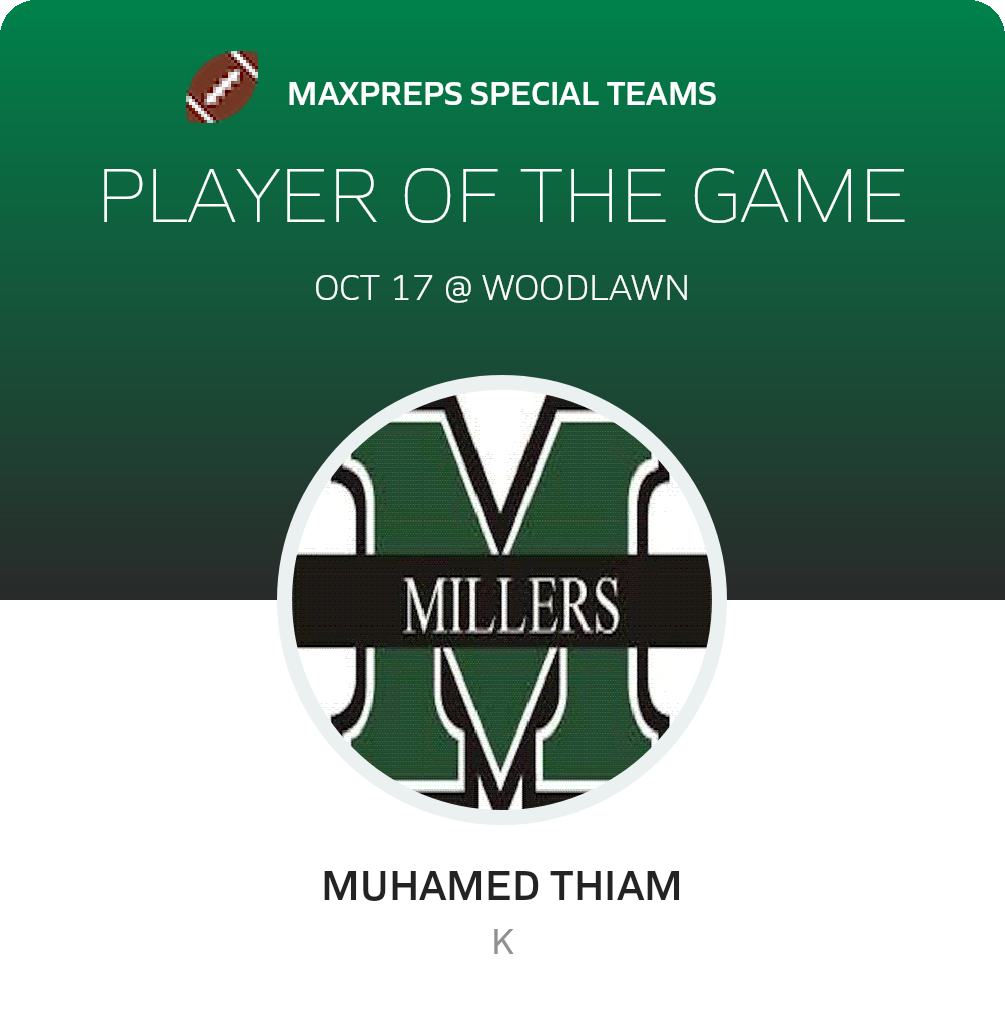In their next game, the Millers battle the Perry Hall Gators (Baltimore, MD) in a Baltimore County 1 game, on Friday, October 25. Milford Mill Academy will attempt to better on its 7-0 season record. The Gators enter the game with a 6-1 record after their 33-32 non-league loss to Harford Tech (Bel Air, MD).