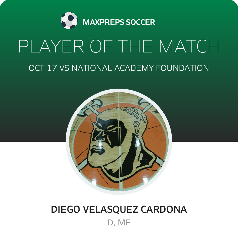 Congratulations to #25 Diego Velasquez Cardona for being selected the Forest Park Soccer Player of the Match.