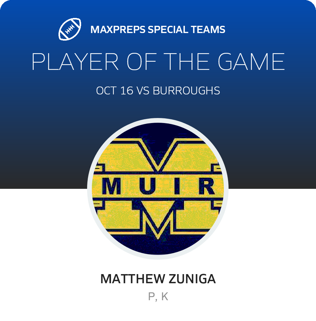 October 16, 2025: Pasadena, CA 91103 Muir Mustangs (Pasadena, CA) fans went home in high spirits Thursday as they observed their football squad smash the visiting Burroughs Bears (Burbank, CA), 63-0 in a league match.