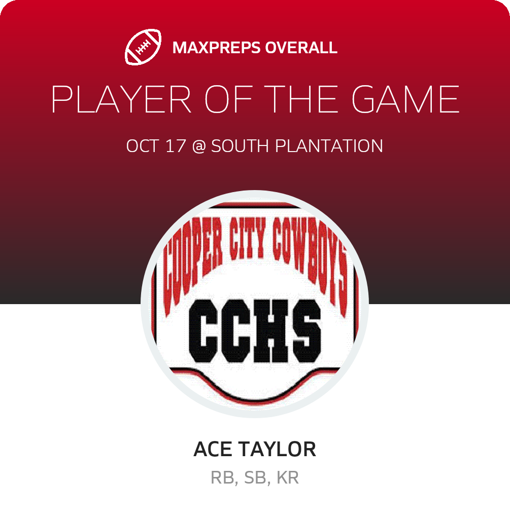 With the win, Cooper City advances its record to 5-3 on the season. The Cowboys host Cypress Bay (Weston, FL) to encounter the Lightning in a non-league bout on Friday, October 24. The Lightning go into the bout with a record of 4-4. Cypress Bay lost 26-0 in their recent league bout against Western (Davie, FL)