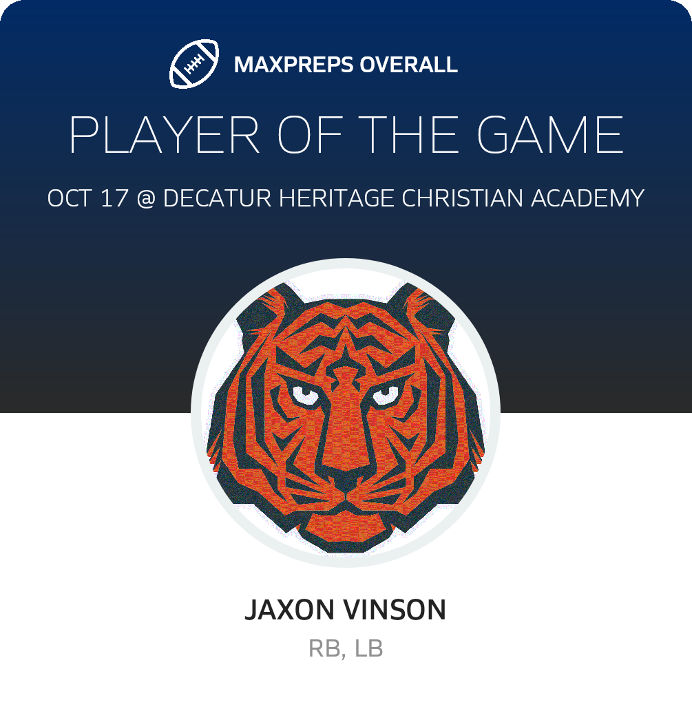 October 17, 2025: Decatur, AL 35601 The Red Bay Tigers football team scored 50 points and held the host Decatur Heritage Christian Academy Eagles to 9 in the Tigers league victory on Friday.