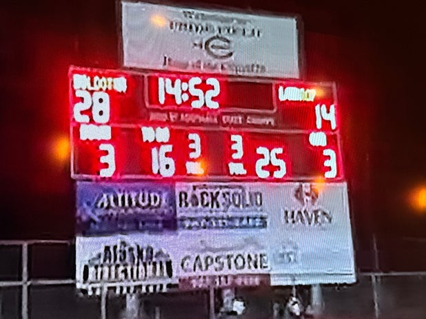 The Soldotna (AK) varsity football team won Friday's neutral playoff game against Lathrop (Fairbanks, AK) by a score of 51-28.