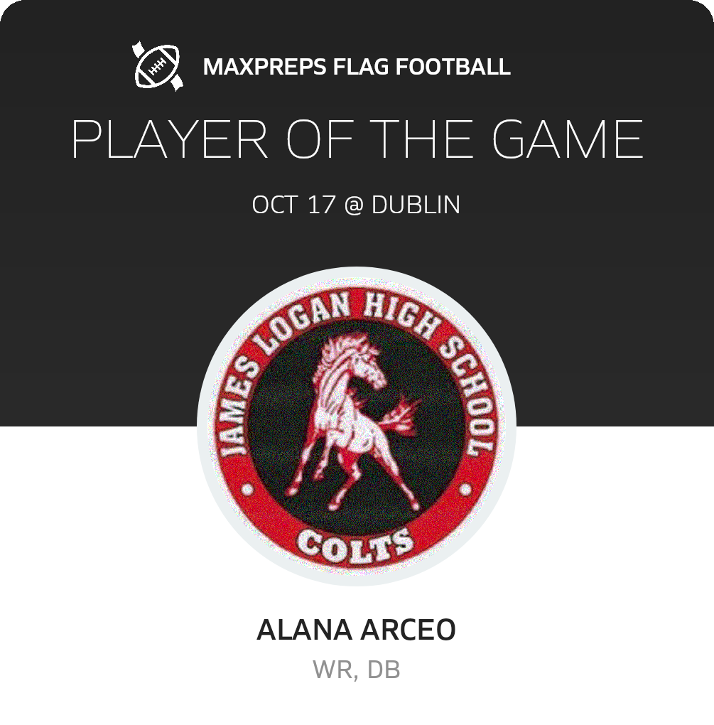 October 17, 2025: Dublin, CA 94568 The Dublin Gaels flag football team (Dublin, CA), dropped 21-6 in Friday's non-league bout with the visiting James Logan Colts (Union City, CA)