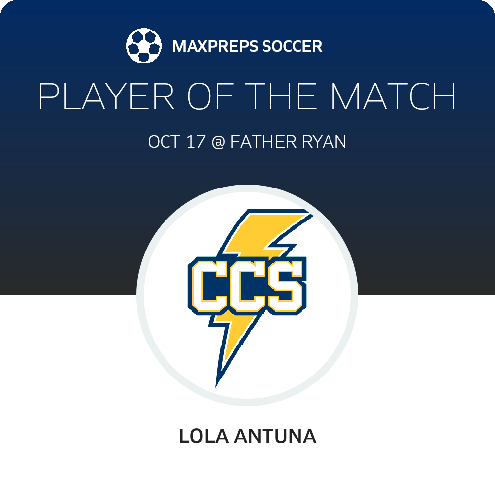Congratulations to #18 Lola Antuna for being selected the Chattanooga Christian Girls Soccer Player of the Match.