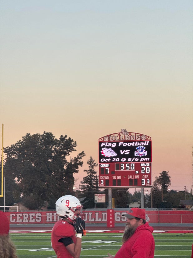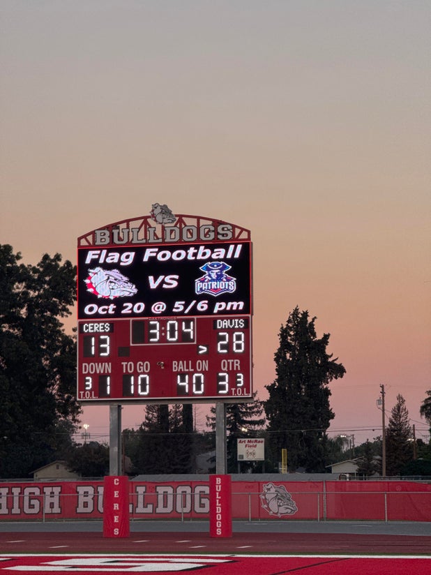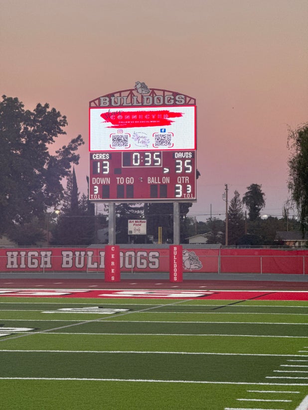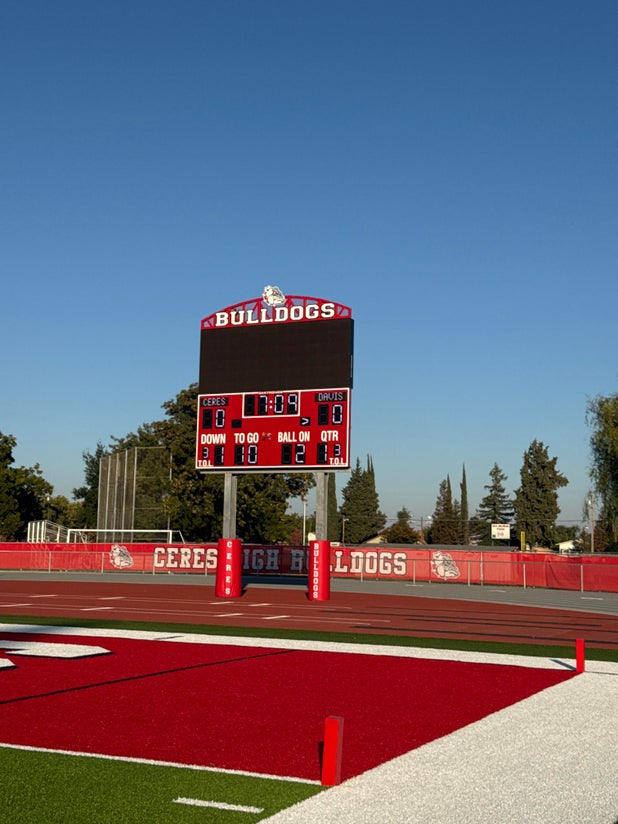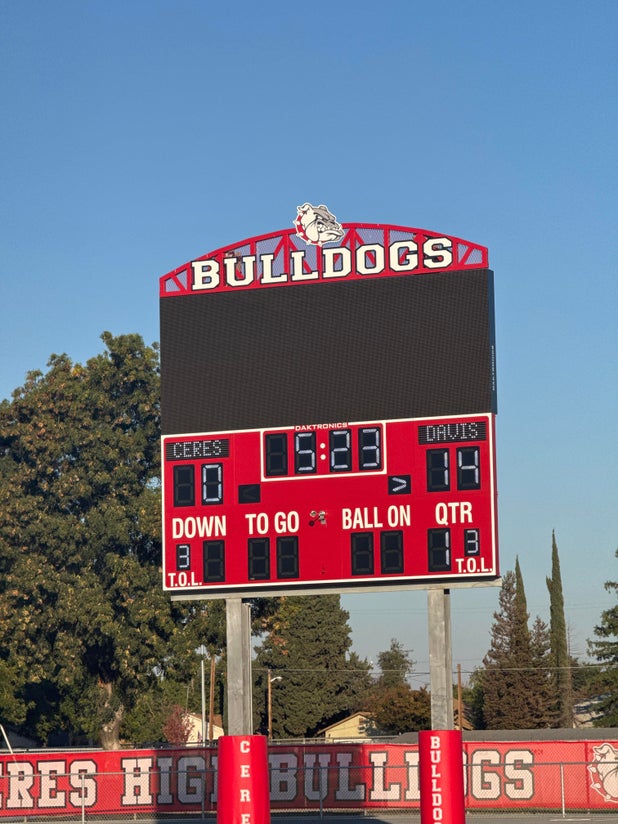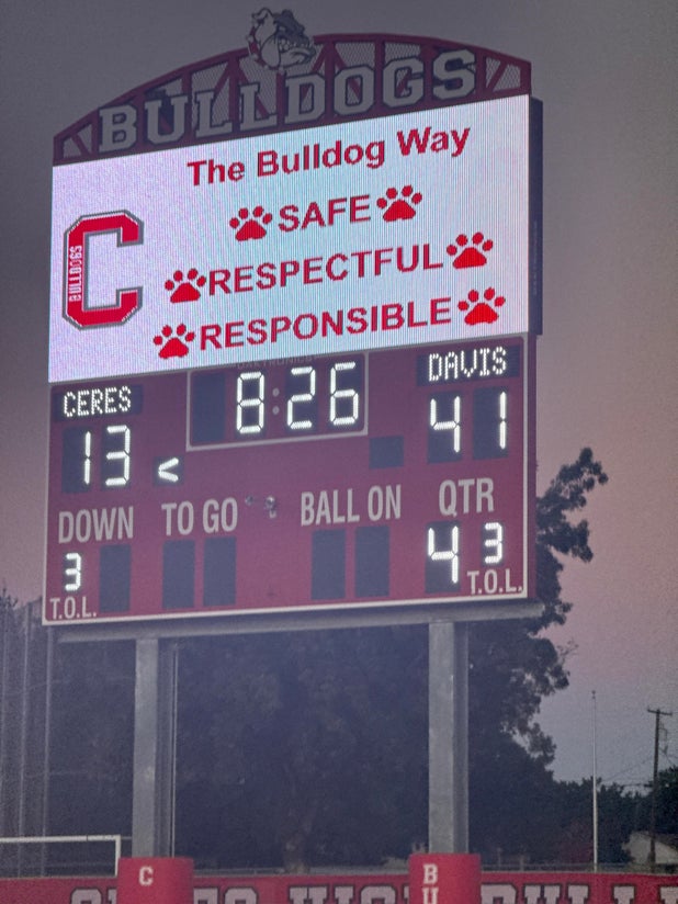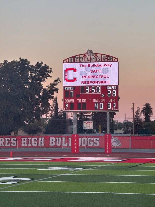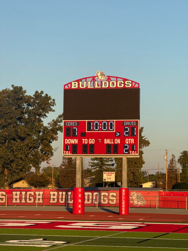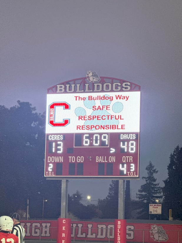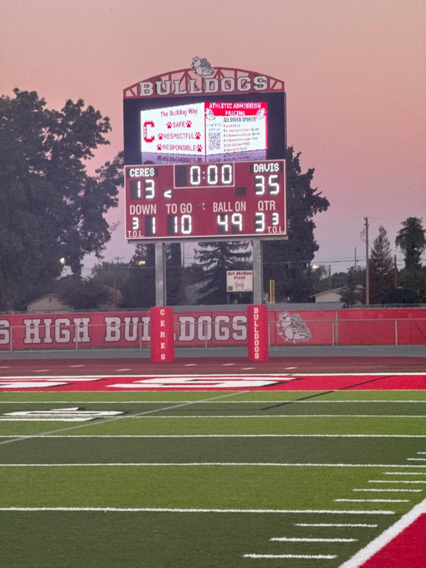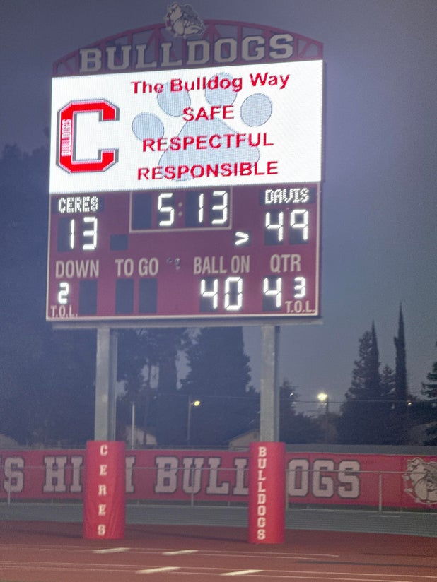 October 17, 2025: Ceres, CA 95307 The Grace Davis Spartans overwhelmed the host Ceres Bulldogs football squad by a margin of 49-13 in Friday's league test.