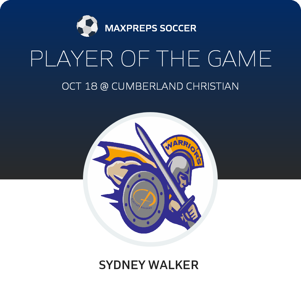 Congratulations to #16 Sydney Walker for being selected the Calvary Academy Girls Soccer Player of the Match.