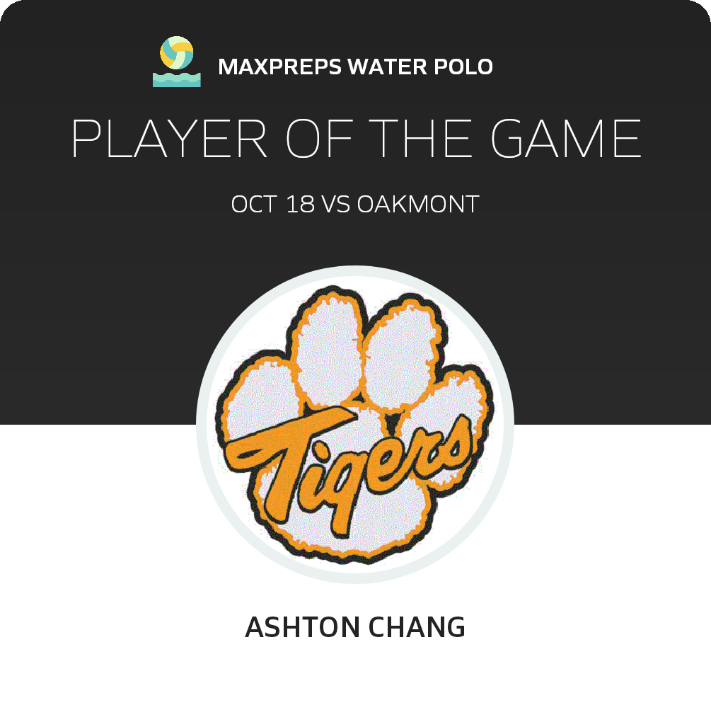 Congratulations to #10 Ashton Chang for being selected the Roseville JV Water Polo Player of the Game.