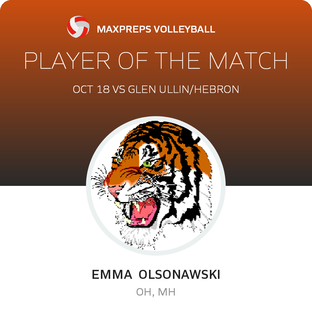Congratulations to #3 Emma Olsonawski for being selected the New England Volleyball Player of the Match.