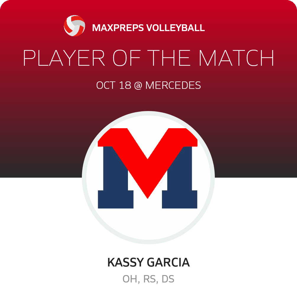 Congratulations to #24 Kassy Garcia for being selected the Veterans Memorial Volleyball Player of the Match.