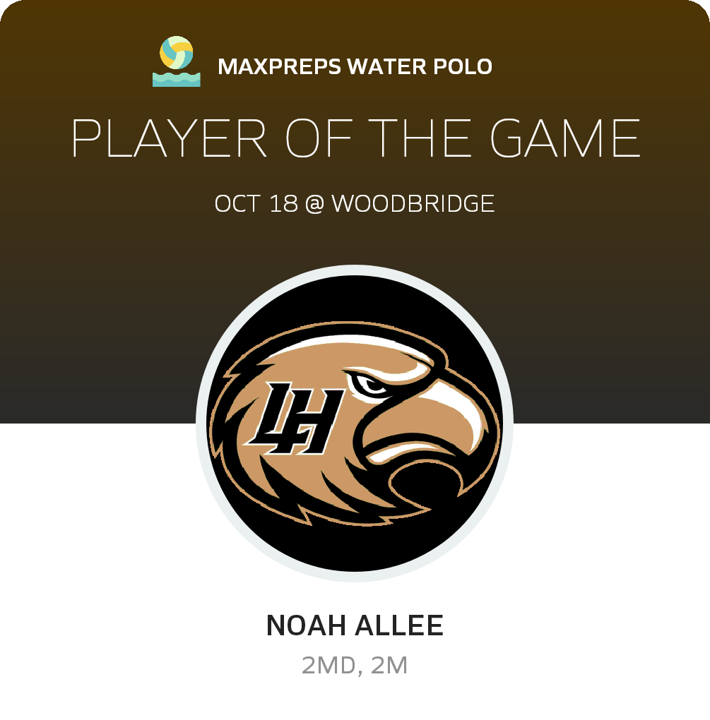 Congratulations to #11 Noah Allee for being selected the Laguna Hills Water Polo Player of the Game.