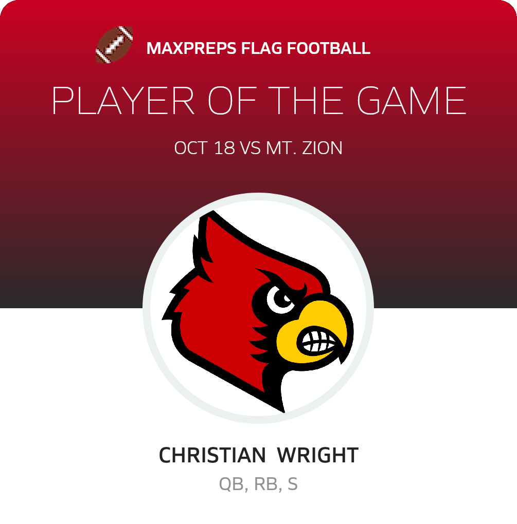 Congratulations to #5 Christian Wright for being selected the Jonesboro Girls Flag Football Player of the Game.