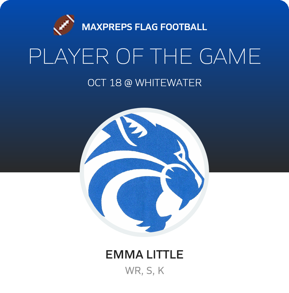 Congratulations to #7 Emma Little for being selected the Locust Grove Girls Flag Football Player of the Game.