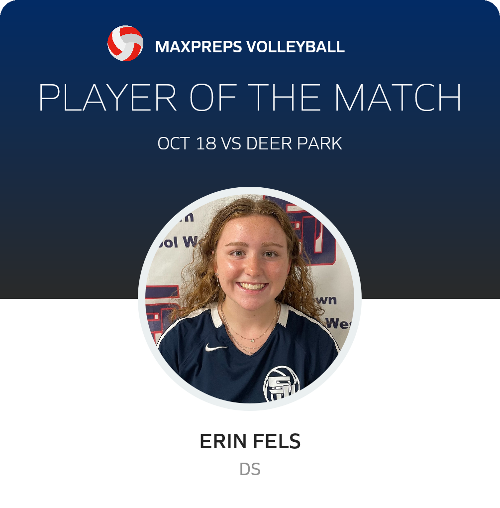 Taylor Marsh tallied 10 kills and hit 91% for Smithtown West (12-2) in a 25-16, 25-23, 25-14, win in Suffolk IV. Kamden Wheeler recorded eight kills, five aces and three blocks and Angie Savoretti added five kills, three aces and nine digs. Erika Gehrling dished out 32 assists in the win.