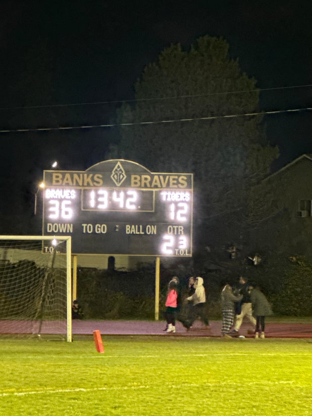 October 18, 2024: Banks, OR 97106 The Banks Braves football squad scored 43 points and limited the visiting Yamhill-Carlton Tigers to 18 in the Braves league triumph on Friday.