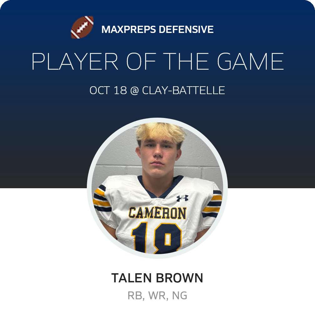 The Dragons now sport a 7-1 record. They take the field next when they host Bridgeport for a non-league test on Friday, October 25. Cameron will meet a Bulldogs squad coming off a 40-34 league loss to Shadyside (Shadyside, OH). The Bulldogs record now stands at 3-6.