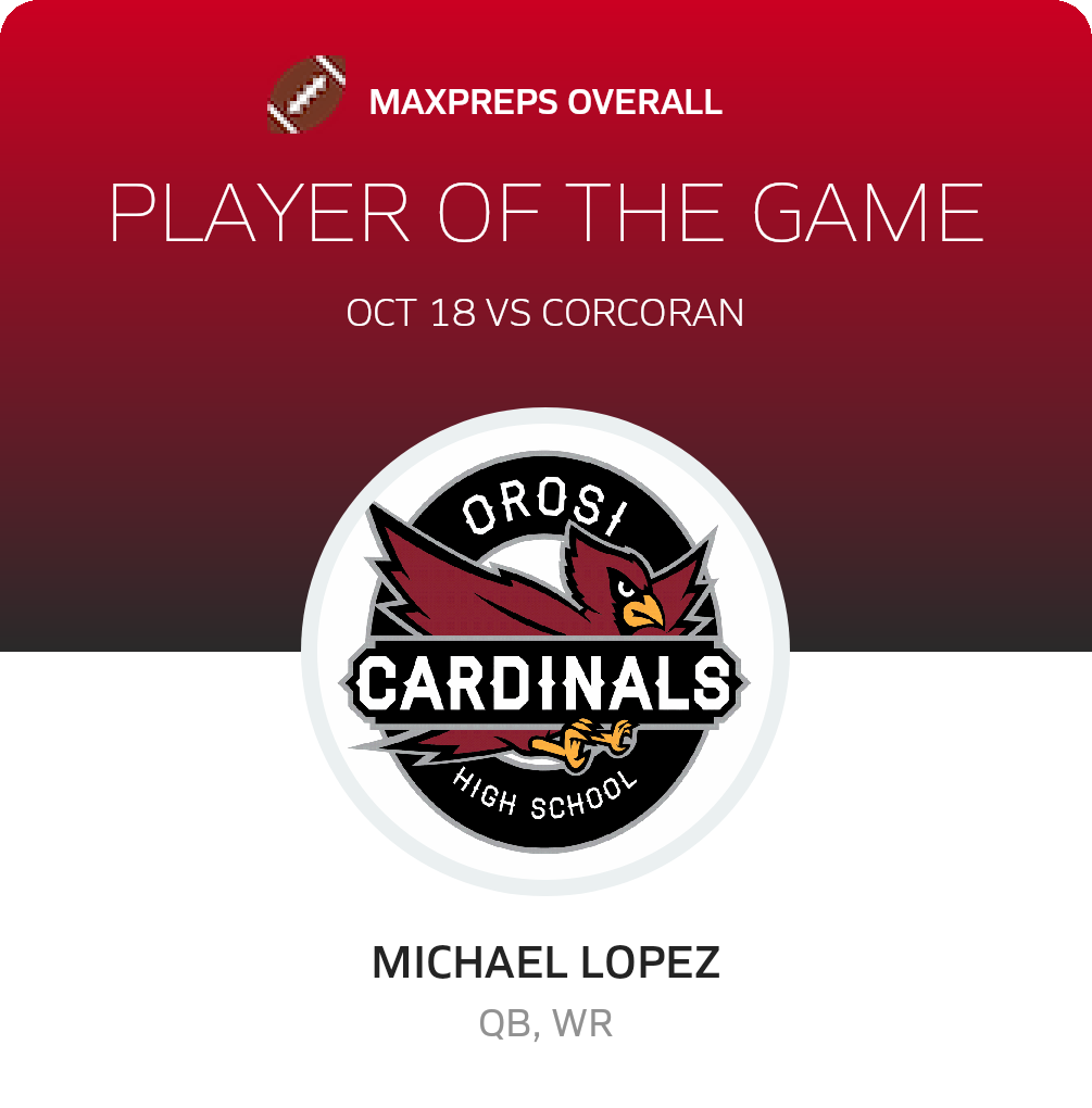 October 18, 2024: Orosi, CA 93647 In Friday's league game, the Corcoran Panthers (Corcoran, CA) football team were victorious over the host Orosi Cardinals (Orosi, CA), by a tally of 27-14.